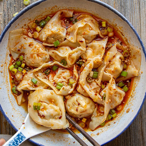 The Chaozhou tiao kou wonton is a delicious snack that combines the taste of pork with peanuts, garlic, sesame oil, and other spices like ginger or salt to make it even more attractive. They are generally served with mustard since it gives an extra zing to their flavour. This kind of dumpling can be found in Shantou, but they are also available in special restaurants throughout China, especially in Hong Kong.